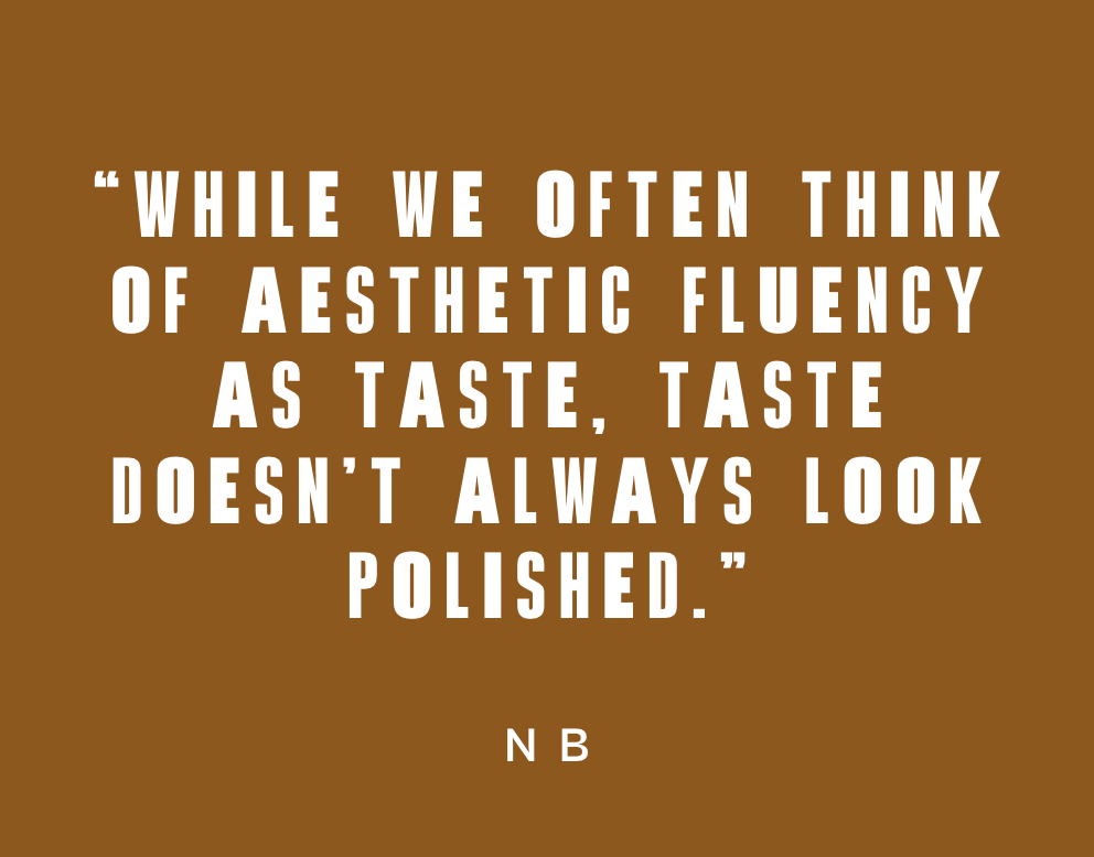 And while we often equate aesthetic fluency with polish, taste doesn’t always look polished.